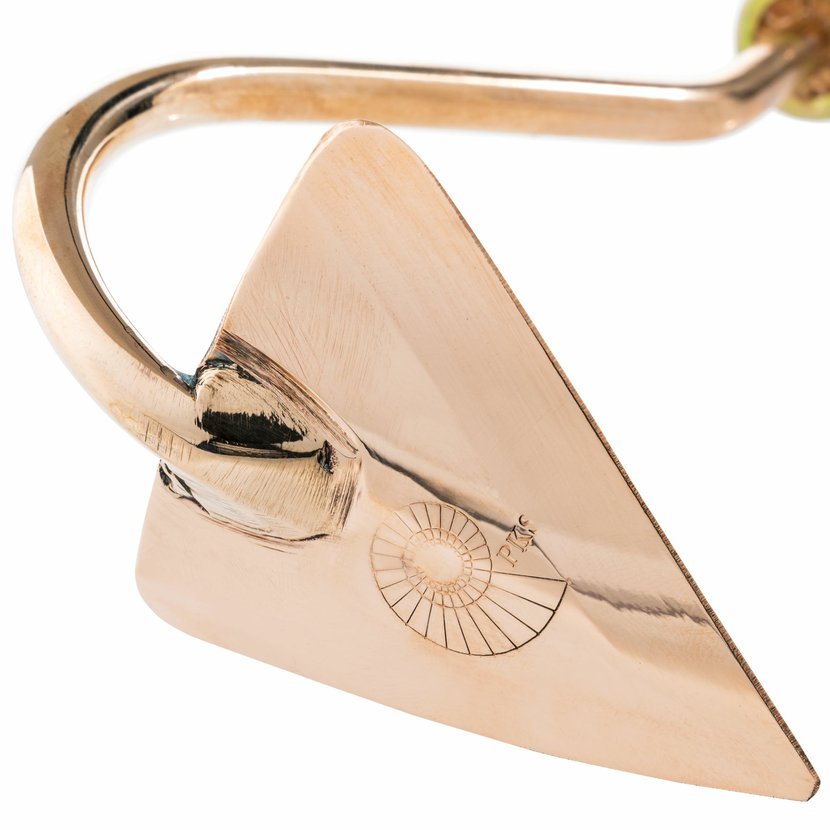 Praktická malá bronzová motyka trojúhelníkového tvaru.